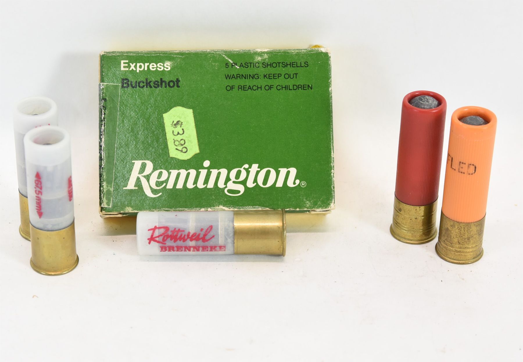 3 rounds of Rottweil 20ga 2-3/4" rifled slugs.