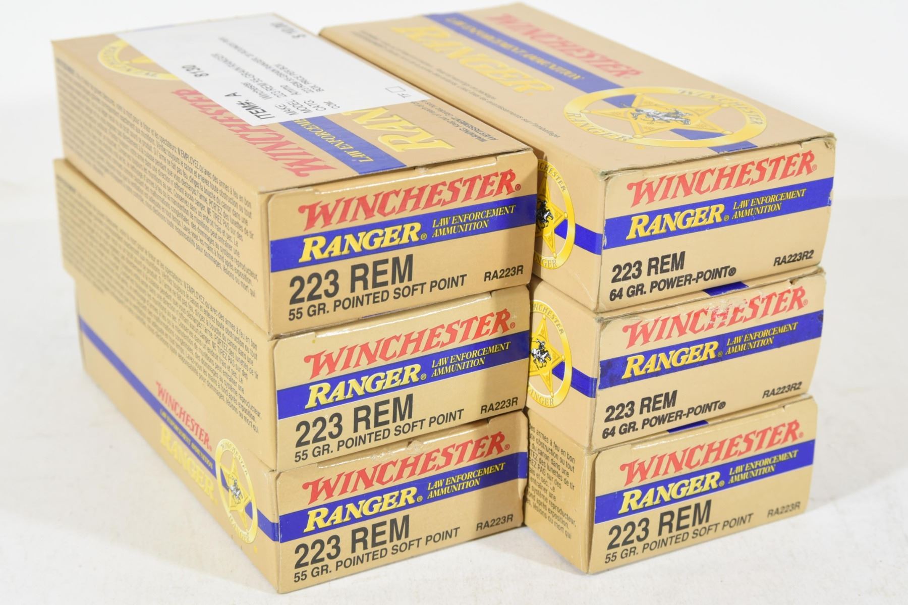 1) 80 rounds 55gr PSP. 2) 24 rounds 64gr Power-Point. 3) 15 brass cases.