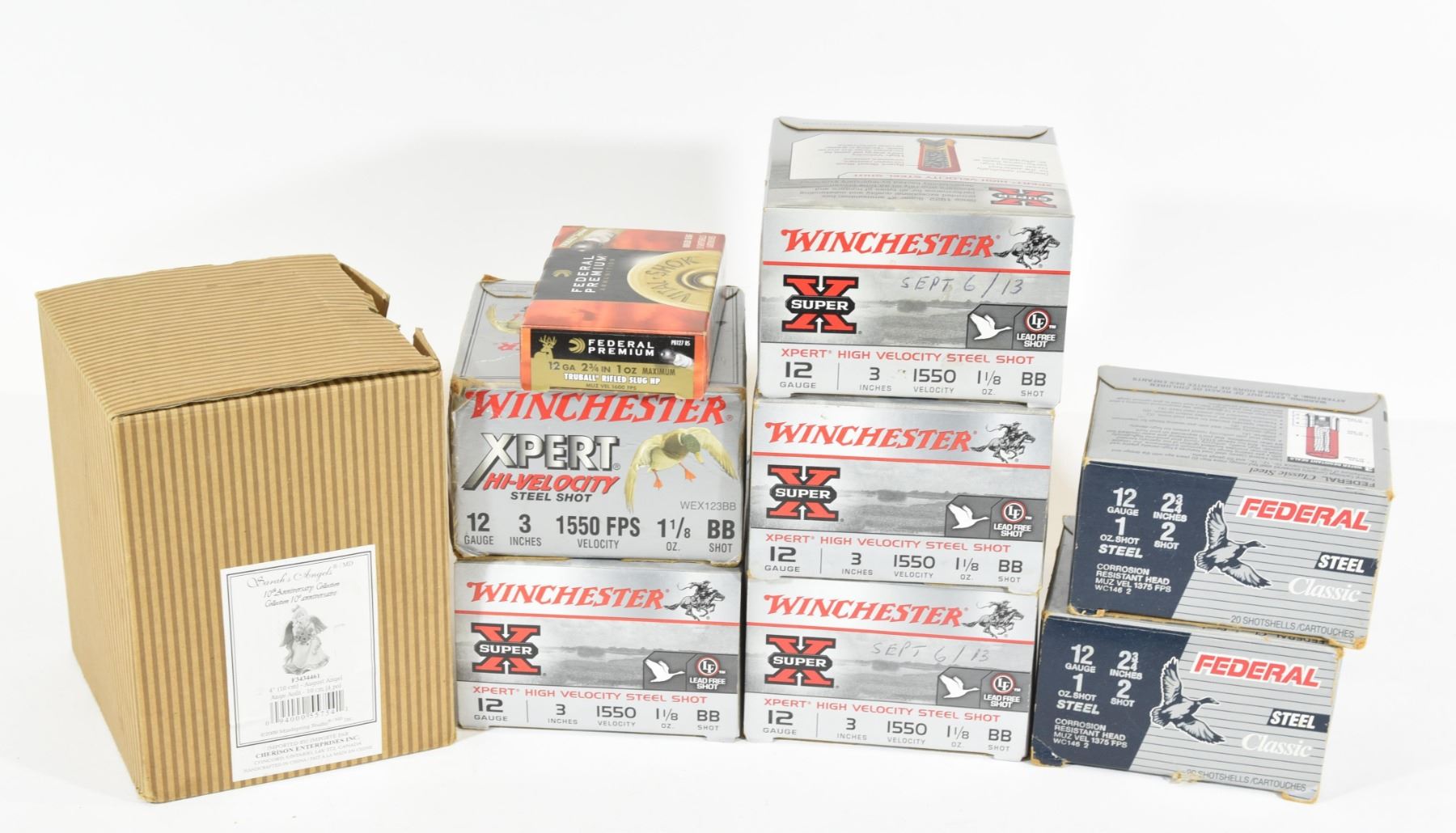 125 rnds Winchester 3" Steel Shot BB, 40 rnds Federal 2 3/4", 5 rnds Federal 2 3/4" Slugs, 49 rnds mixed 2 3/4" and 3".