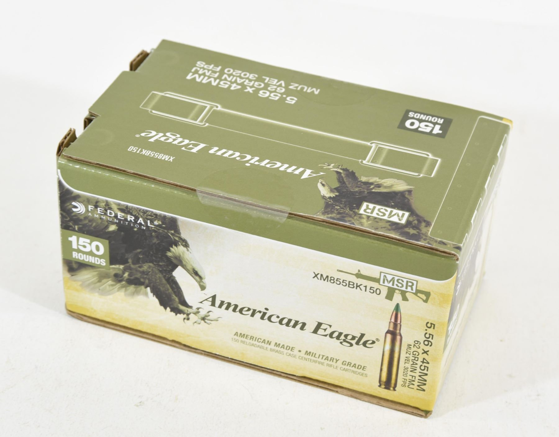 150 Rounds of American Eagle,5.56x45 MM, 62 Grain FMJ, Military Grade. this ammo is for OUTDOOR RANGE USE ONLY.