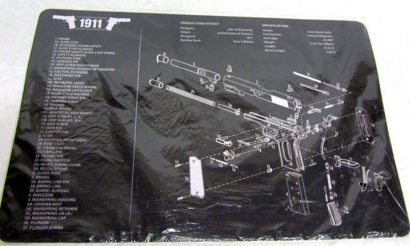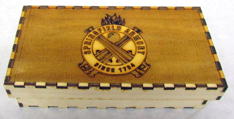 CLEANING MAT IS NEW IN PACKAGING. AMMO BOX IS LASER-ENGRAVED WOOD, HOLDS 50 45 ACP CARTRIDGES.