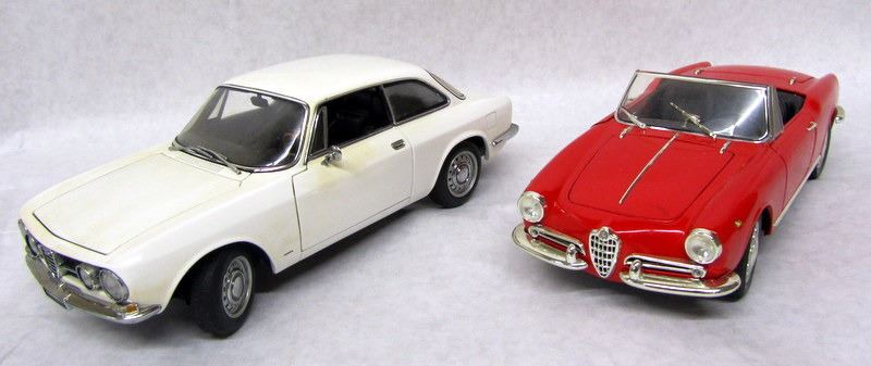 RED 1959 ALFA ROMEO GUILIETTA SPYDER, 1:18, MADE BY RICKO. WHITE ALFA ROMEO 1750, 1:18, MADE BY AUTO ART.
