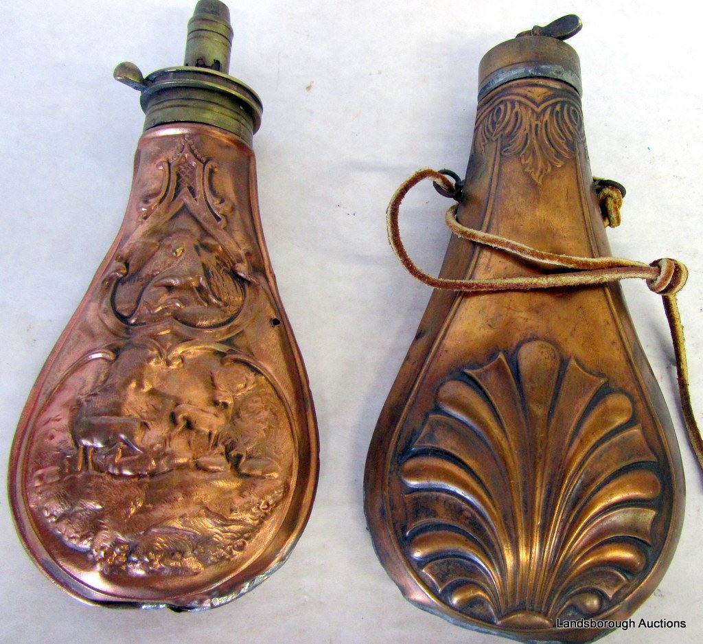 2 ANTIQUE COPPER POWDER FLASKS