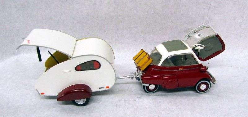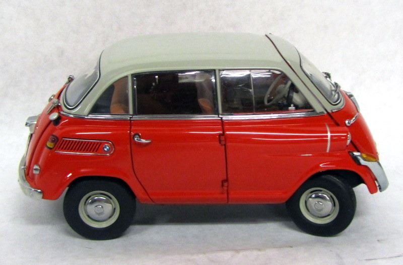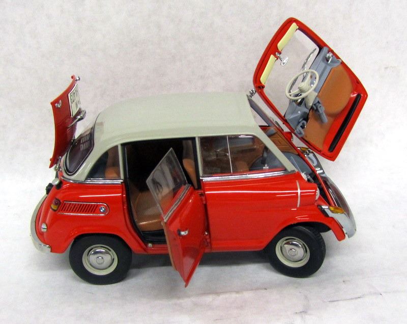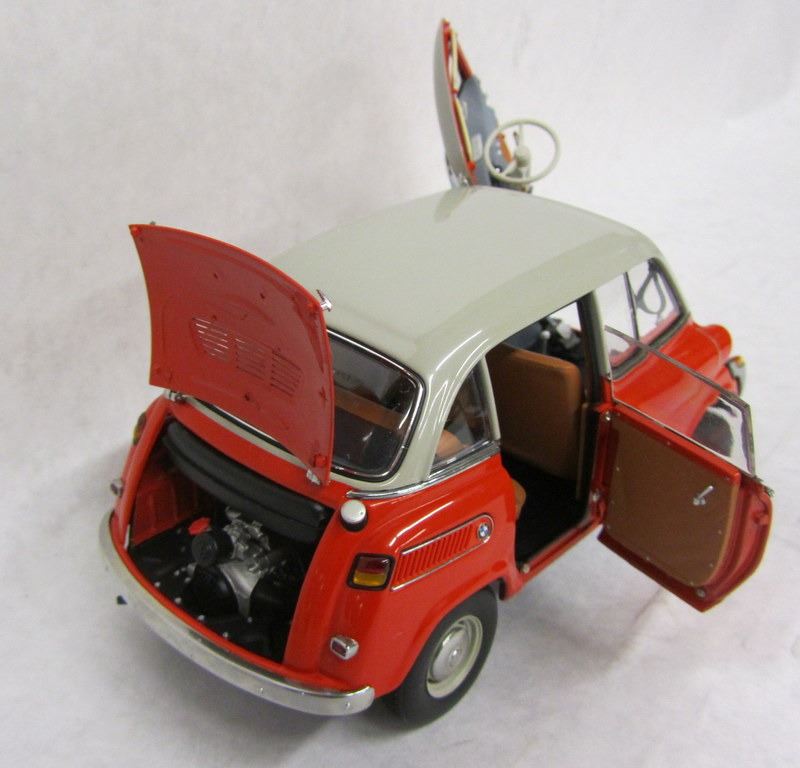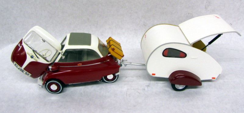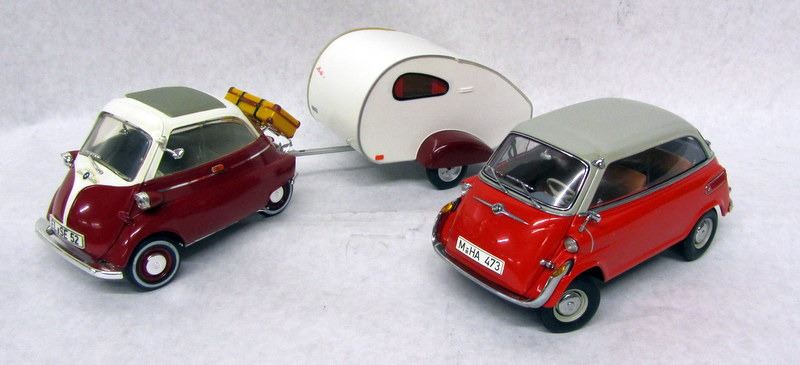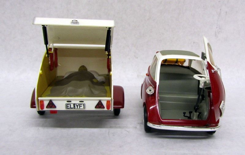 RED BMW MODEL 600, 1:18, MADE BY AUTOART. RED BMW ISETTA 300, WITH TRAILER, 1:18.
