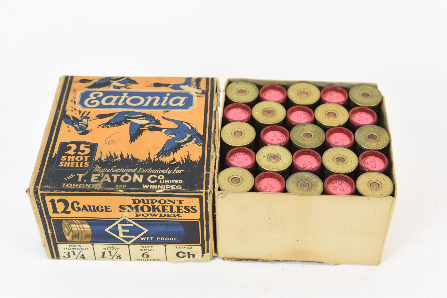 In original box manufactured for T.Eaton Co, Toronto and Winnipeg. Paper hulls. 1-1/8 oz shot.