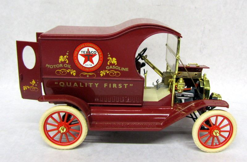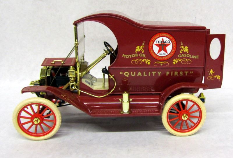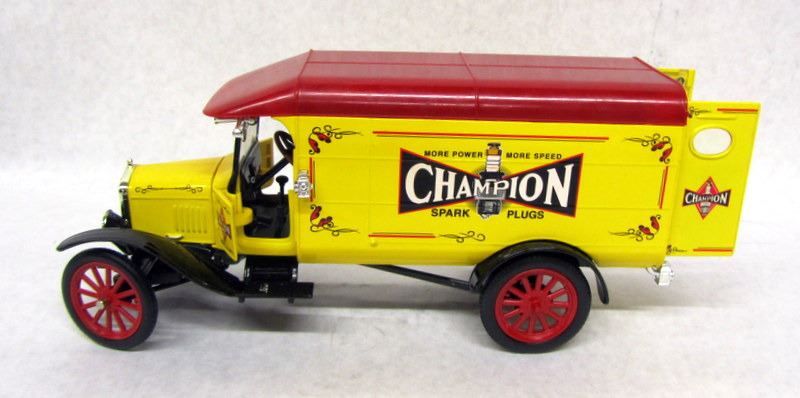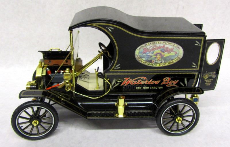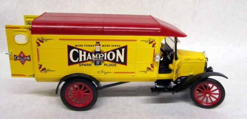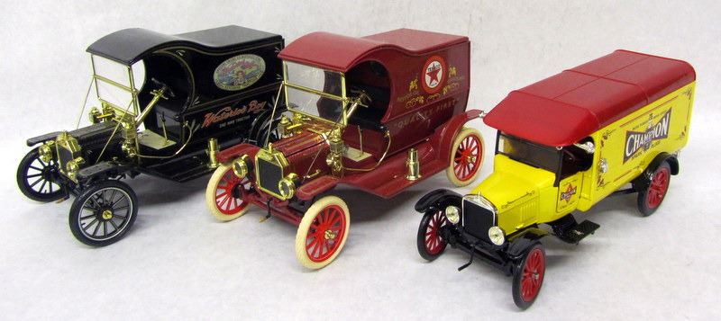 TEXACO MOTOR OIL 1913 FORD MODEL T, 1:18, MADE BY GEARBOX COLLECTIBLES. WATERLOO BOY TRACTORS 1912 FORD MODEL T, 1:18, MADE BY GEARBOX COLLECTIBLES. CHAMPION SPARK PLUGS FORD TT PANEL VAN, 1:18, MADE BY MATCHBOX.