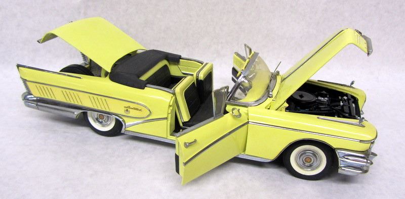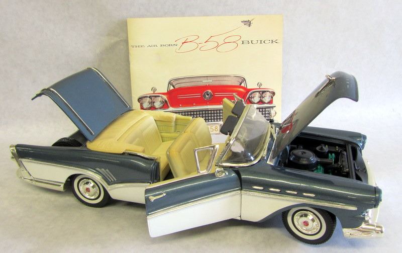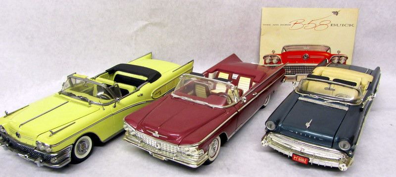PINK 1959 BUICK ELECTRA 225, 1:18, MADE BY ROAD SIGNATURE. YELLOW 1958 BUICK LIMITED, 1:18, MADE BY SUN STAR, WITH PLATINUM COLLECTION TAG. BLUE AND WHITE BUICK ROADMASTER, 1:18, MADE BY MOTOR MAX, COMES WITH COLLECTOR BOOKLET.