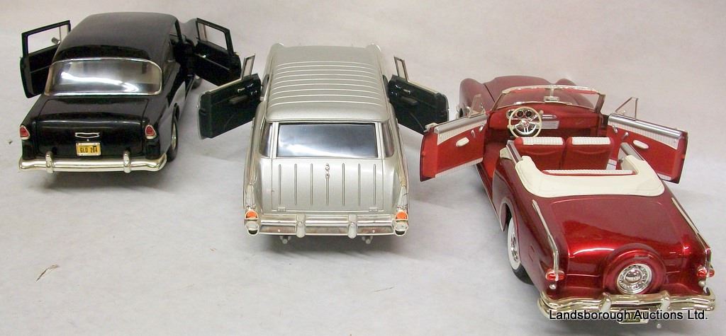 REB 1953 PACKARD CARIBBEAN 1:18 SCALE BY SIGNATURE, SILVER 57 CHEVY 1:18 SCALE BY SIGNATURE, BLACK 1955 CHEVROLET BY ERTL.
