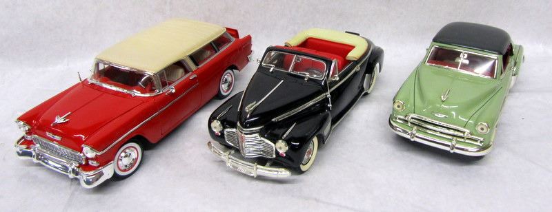 ONE 1941 CHEVROLET DELUXE 1/18 SCALE BY UNIVERSAL HOBBIES HR, ONE CHEVROLET 1950 1/18 SCALE MIRA BY SOLIDO, ONE 1955 CHEVROLET NOMAD 1/18 SCALE BY MAISTO.