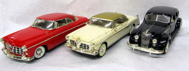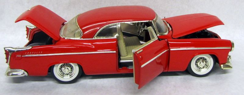 RED CHRYSLER C300, 1:18, MADE BY MOTOR MAX. BLACK 1936 CHRYSLER AIRFLOW, 1:18, MADE BY SIGNATURE. BEIGE 1955 CHYSLER IMPERIAL, 1:18, MADE BY SIGNATURE.