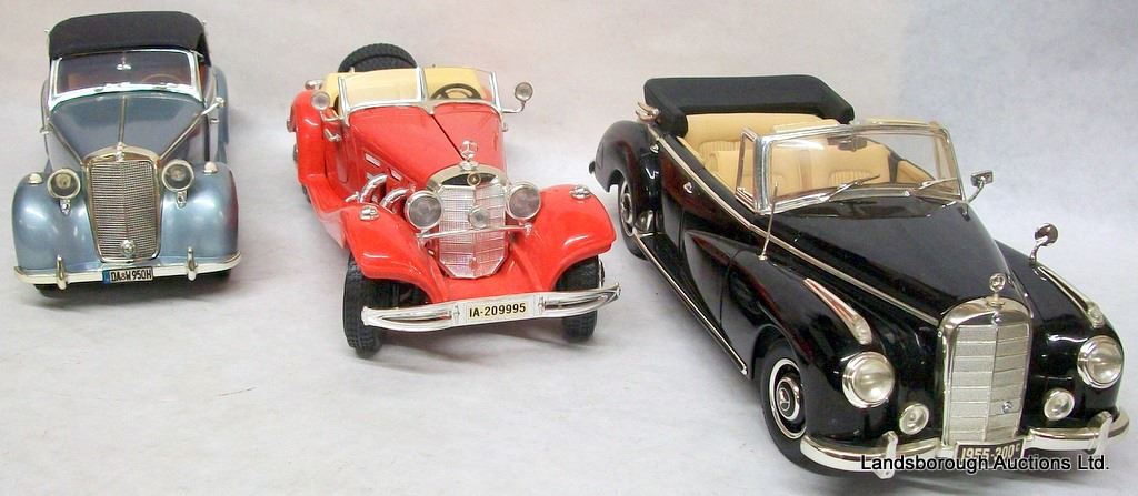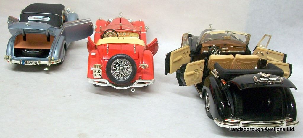 BLACK 300C 1:18 SCALE BY RICKO, RED 1936 500K ROADSTER 1:20 SCALE BY DURANGO, BLUE 1950 170S 1:18 SCALE BY SIGNATURE.
