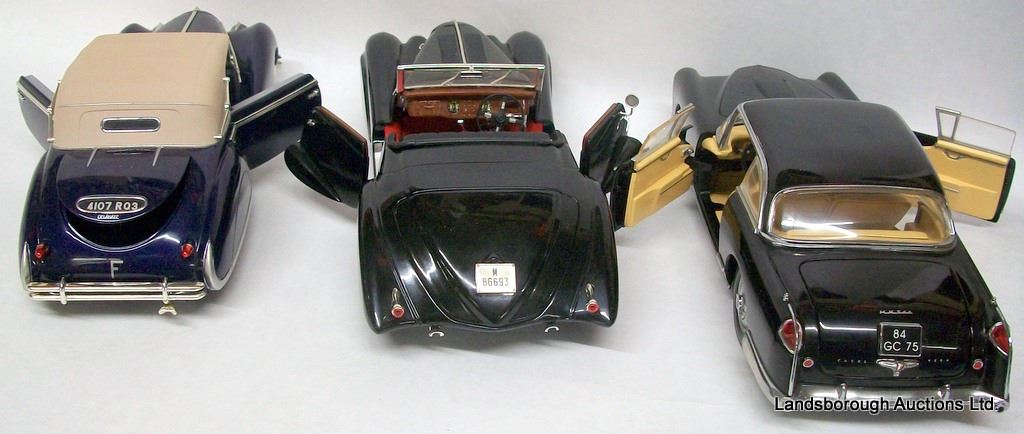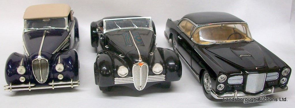 BLACK FACEL VEGA HK500 1:18 SCALE BY SUN STAR, BLACK DELAHAYE 1:18 SCALE BY TUITOY, DEEP PURPLE 1947 DELAHAYE 1:18 SCALE BY SIGNATURE.