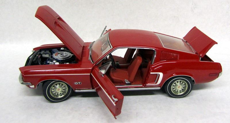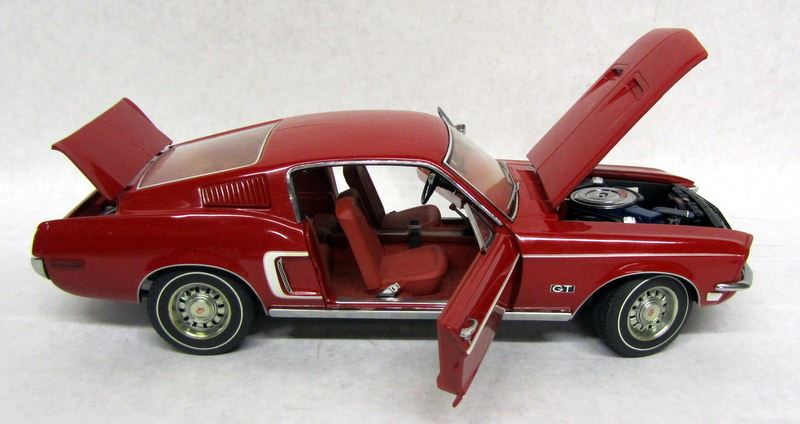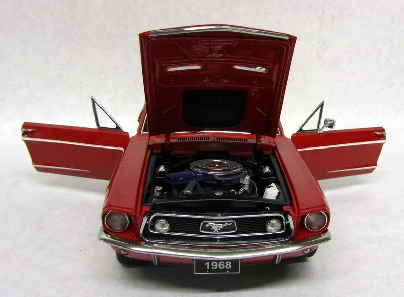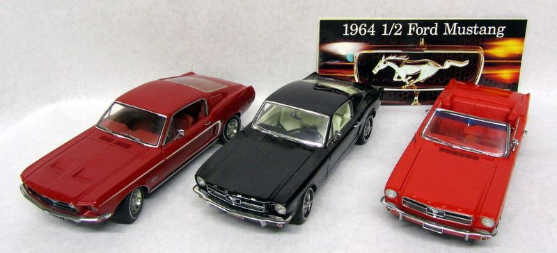 RED 1964 FORD MUSTANG, 1:18, MADE BY PRECISION 100. RED 1968 FORD MUSTANG, 1:18, MADE BY AUTOART. BLACK 1965 FORD MUSTANG, 1:18, MADE BY AUTHENTICS.