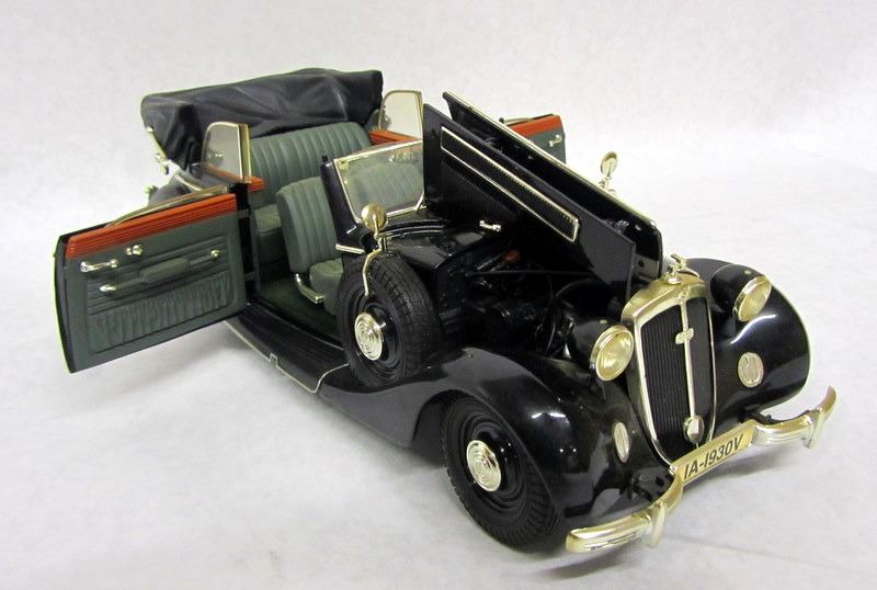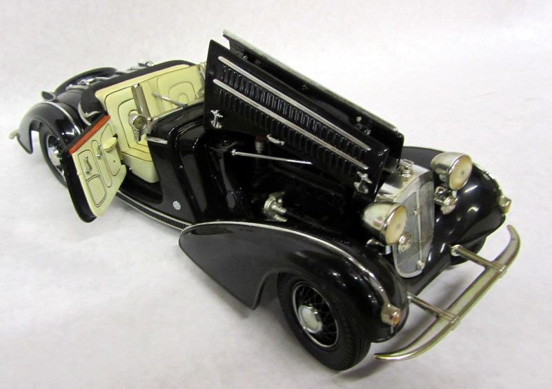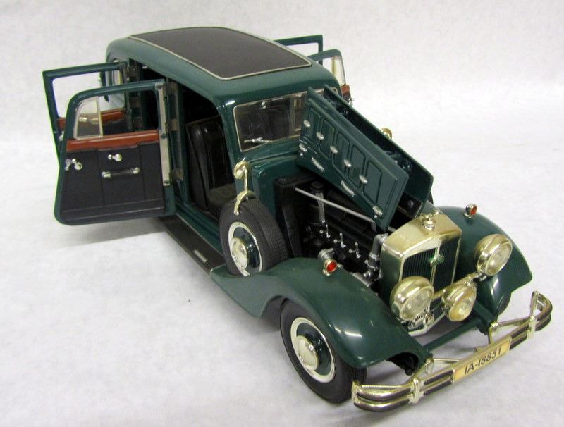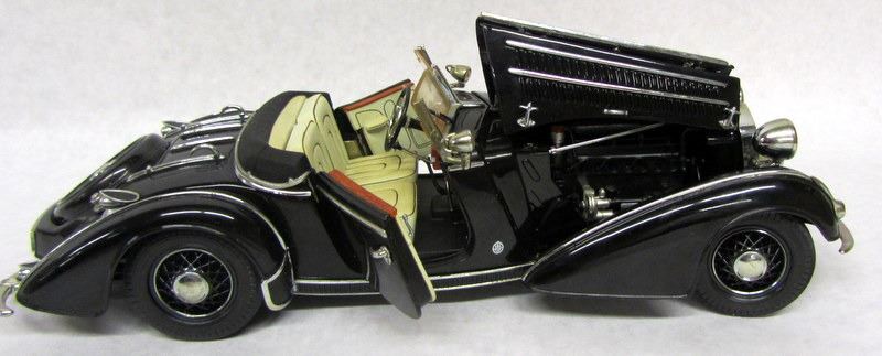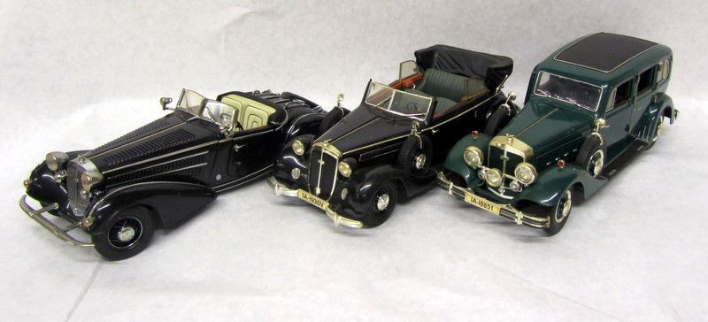 BLACK 1938 HORCH 855, 1:18, MADE BY SUN STAR. MIRRORS HAVE BEEN REPAIRED. BLACH HORCH 930V, 1:18, MADE BY RICKO. HOOD ORNAMENT PARTIALLY BROKEN. GREEN HORCH 851 PULLMAN, 1:18, MADE BY RICKO.