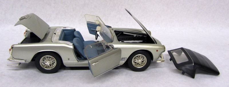 YELLOW MASERATI SPYDER, 1:18, MADE BY MAISTO. RED 1954 MASERATI A6GCS BERLINETTA, 1:18, MADE BY RICKO. GREY 1959 MASERATI 3500GT VIGNALE, 1:18, MADE BY RICKO.