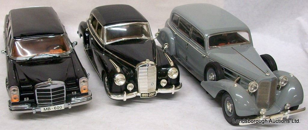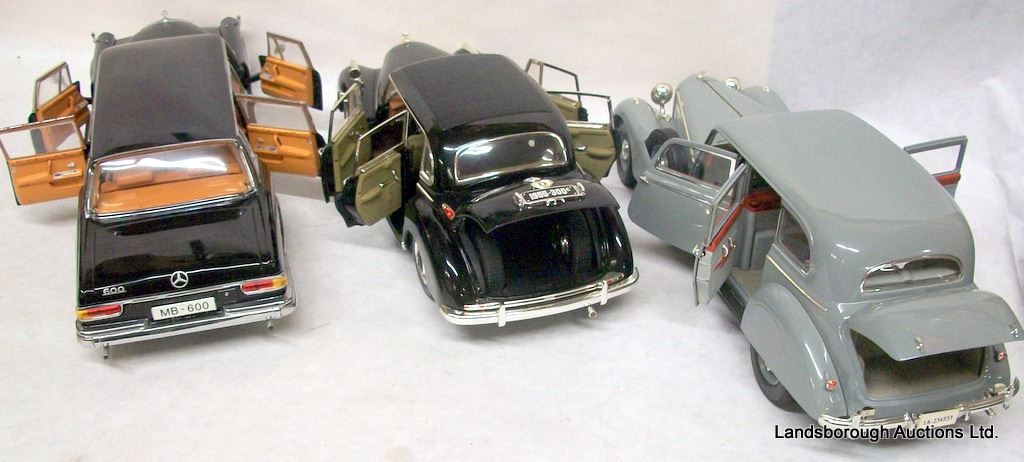 GREY 1938 770K MERCEDES 1:18 SCALE BY SIGNATURE, BLACK 300C MERCEDES 1:18 SCALE BY RICKO, BLACK 600 MERCEDES 1:18 SCALE BY SUN STAR.