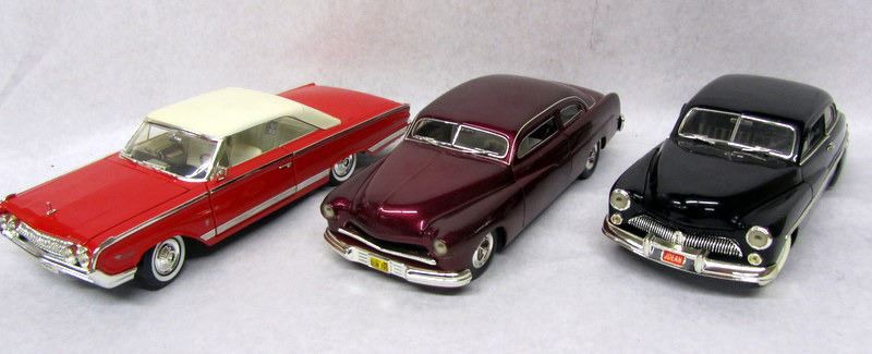 BLACK 1949 MERCURY, 1:18, MADE BY ERTL. PURPLE 1951 MERCURY, 1:18, MADE BY ERTL. RED 1964 MERCURY MARAUDER, 1:18, MADE BY ROAD SIGNATURE.