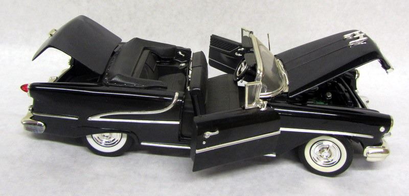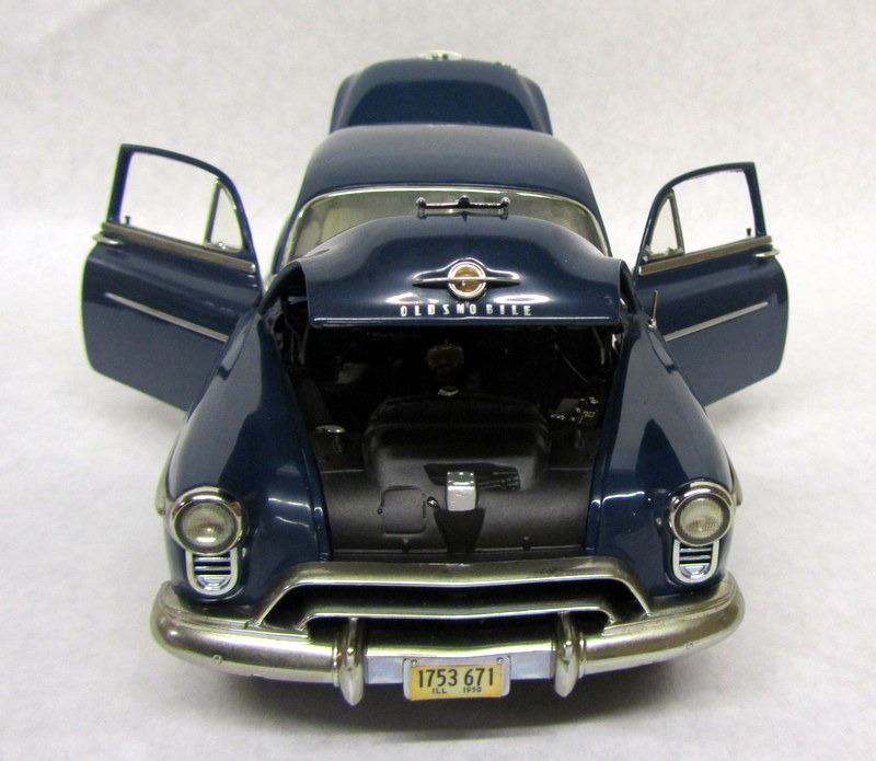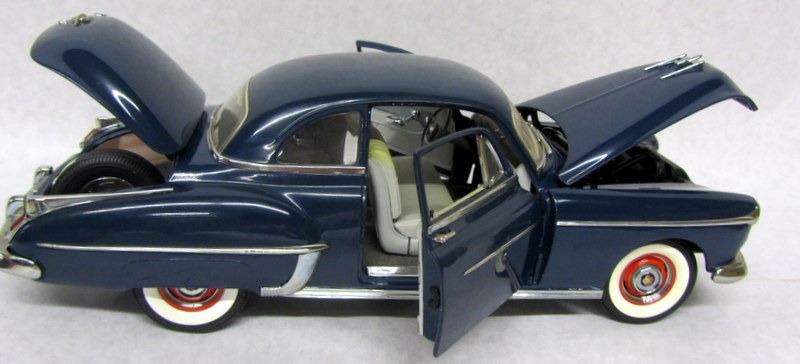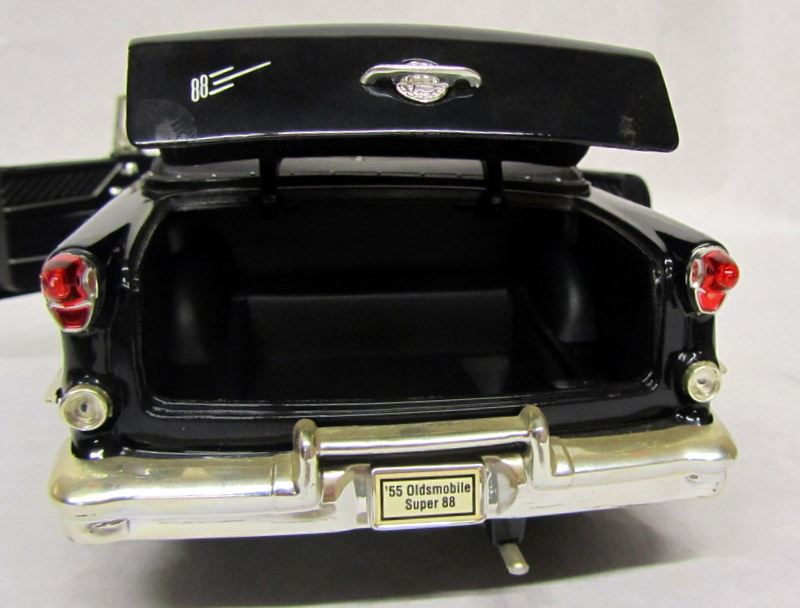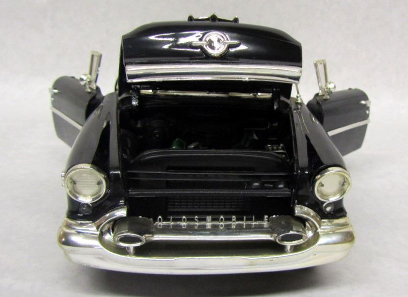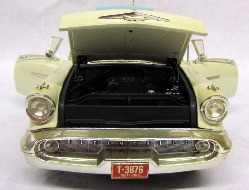 BLUE 1950 OLDSMOBILE 88, 1:18, MADE BY AUTHENTICS. MISSING MIRRORS, WITH CERTIFICATE OF AUTHENTICITY. BLACK 1955 OLDSMOBILE SUPER 88. 1:18, MADE BY WELLY. 1957 OLDSMOBILE SUPER 88, 1:18, MADE BY DIE CAST PROMOTIONS.