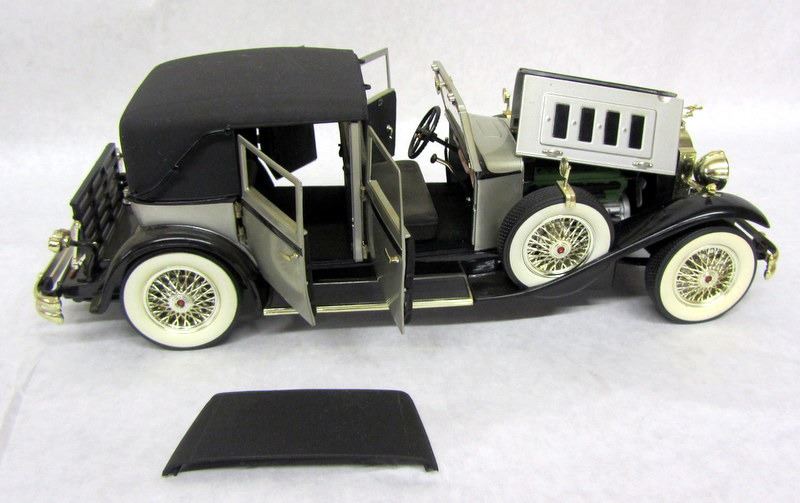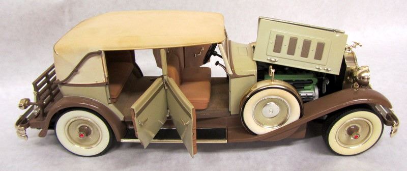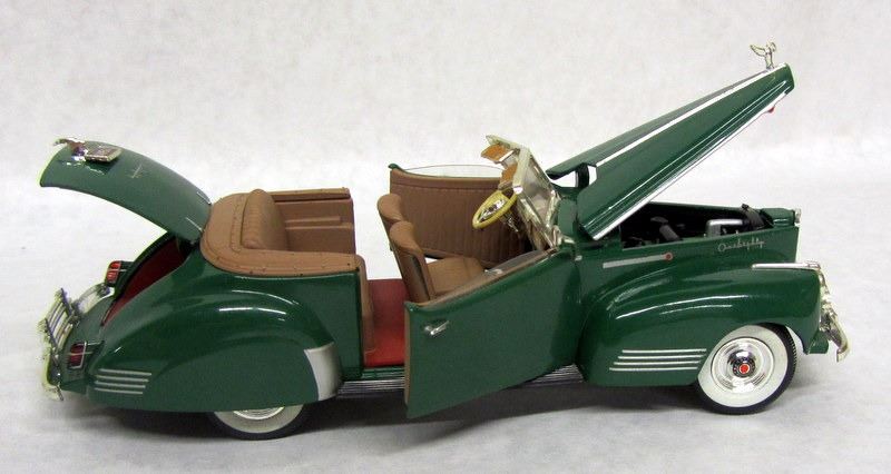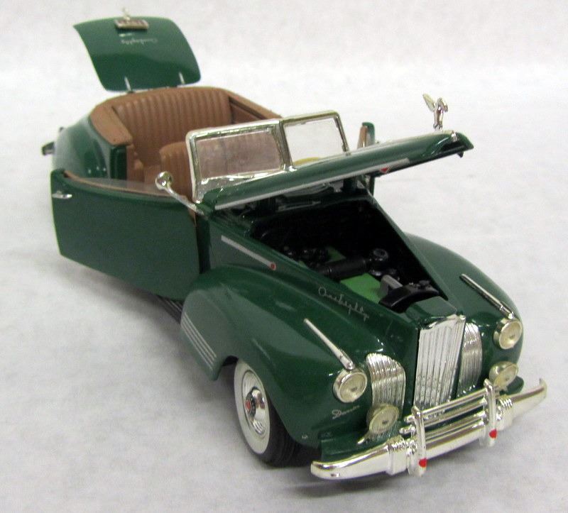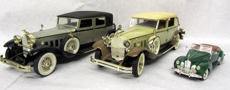 PAIR OF 1930 PACKARD CARS, ONE SILVER, ONE GOLD, 1:18, MADE BY SIGNATURE. GREEN 1941 PACKARD DARRIN CONVERTIBLE, MADE BY SIGNATURE.