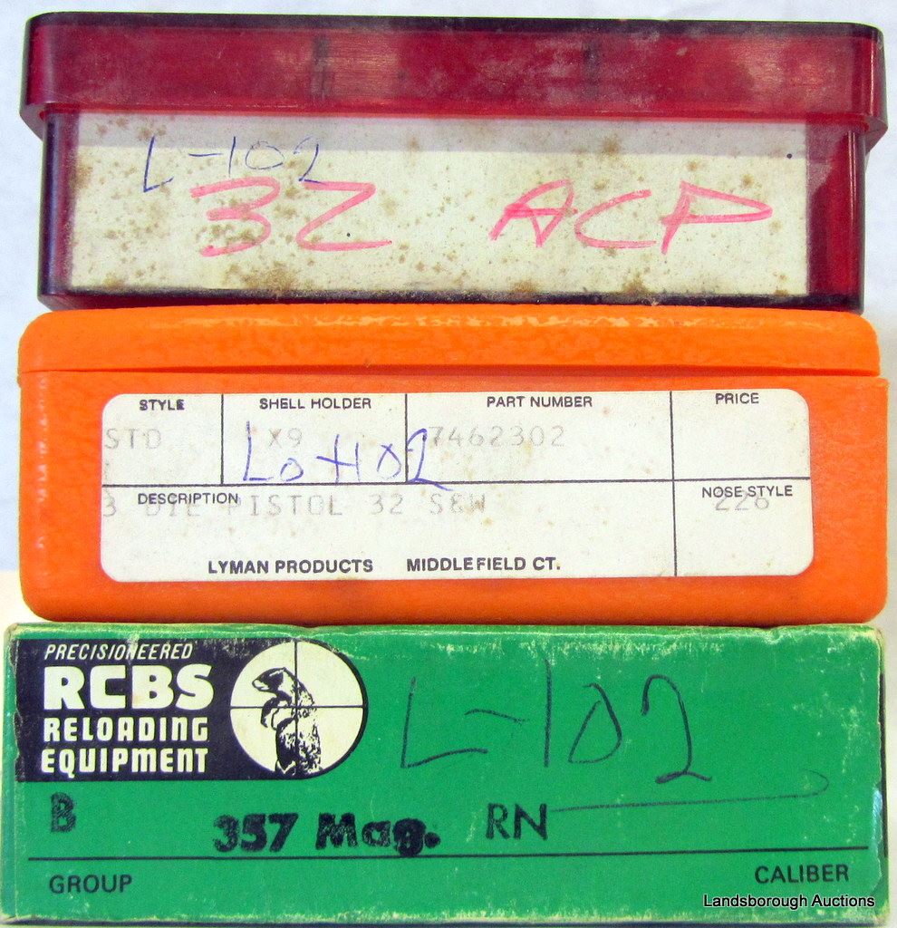 1 SET CH IN 32 ACP AND 1 SET LYMAN 32 S&W AND 1 SET RCBS 357 MAG.