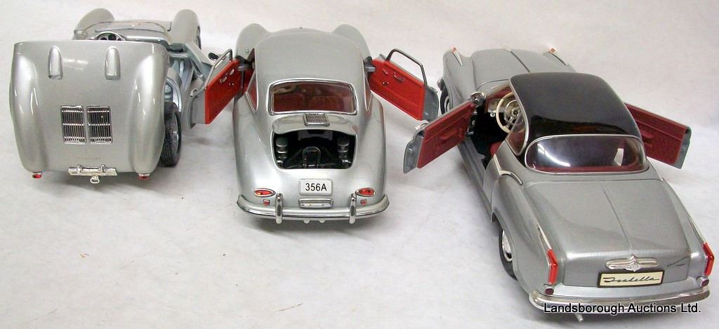 BORGWARD ISABELLA 1:18 SCALE BY REVELL, 1956 PORSCHE 356A 1:18 SCALE BY SUN STAR, PORSCHE 550A SPYDER 1:18 SCALE BY MAISTO.