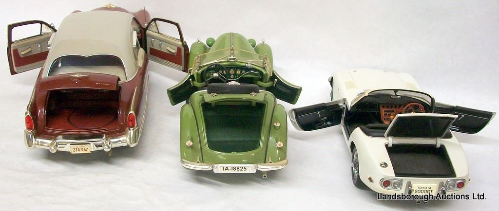 WHITE TOYOTA 2000 GT 1:18 SCALE BY AUTO ART, GREEN WANDERER W25K ROADSTER 1:18 SCALE BY RICKO, 1953 KAISER BY DIE CAST PROMOTIONS.