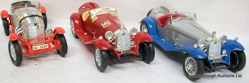 1932 ALFA ROMEO SPIDER BY BURAGO, RED 1932 ALFA ROMEO 2300 SPIDER BY BURAGO, MERCEDES BENZ SSK 1:18 SCALE BY BURAGO.