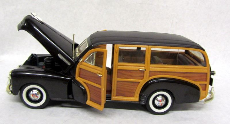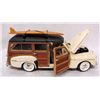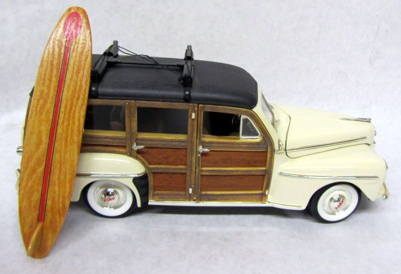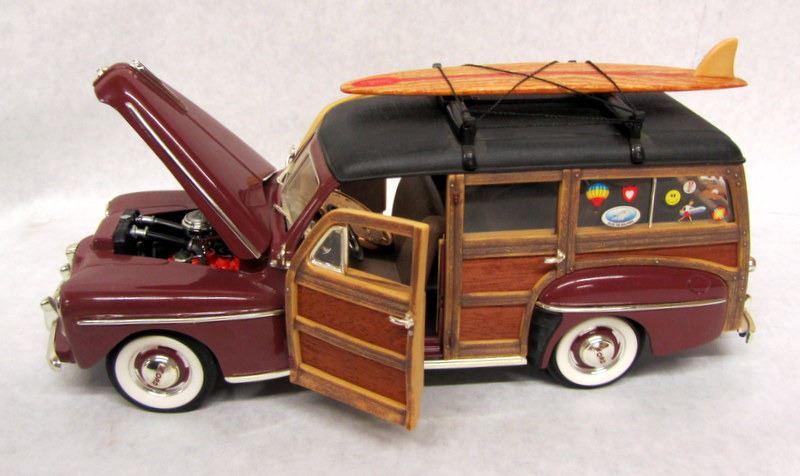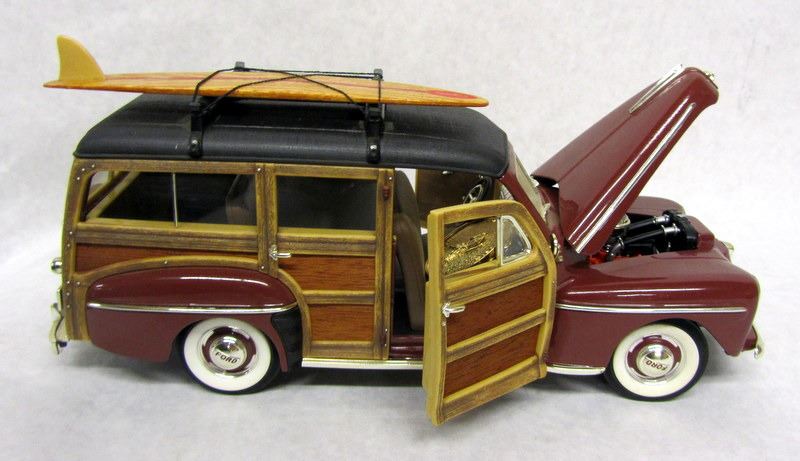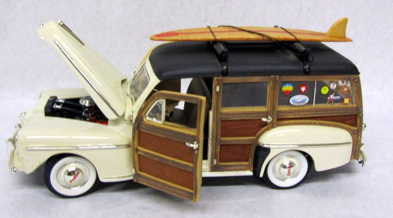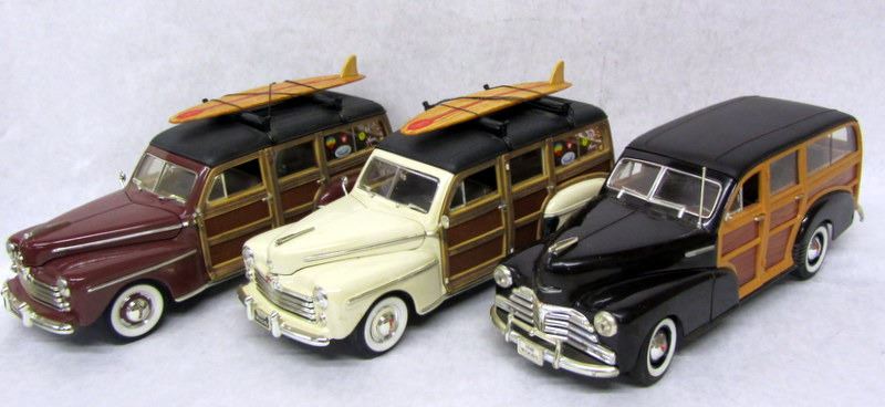 WHITE 1948 FORD WOODY, 1:18, MADE BY ROAD SIGNATURE. BROWN 1948 CHEVROLET FLEETMASTER, 1:18, MADE BY WELLY, MISSING MIRROR. BROWN 1948 FORD WOODY, 1:16, MADE BY ROAD SIGNATURE.