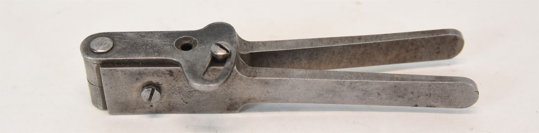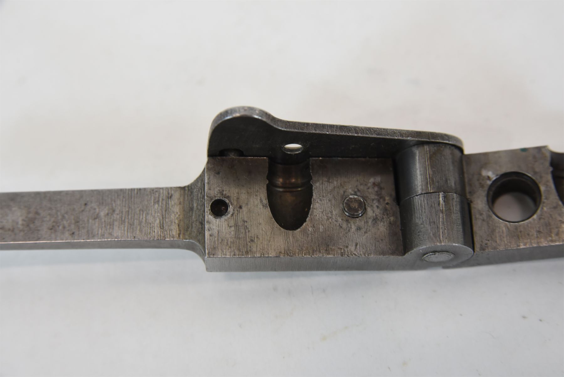 Small mold measures 4 3/4". Single chamber is all steel of unknown make. No ID marks. Some tool marks from use.