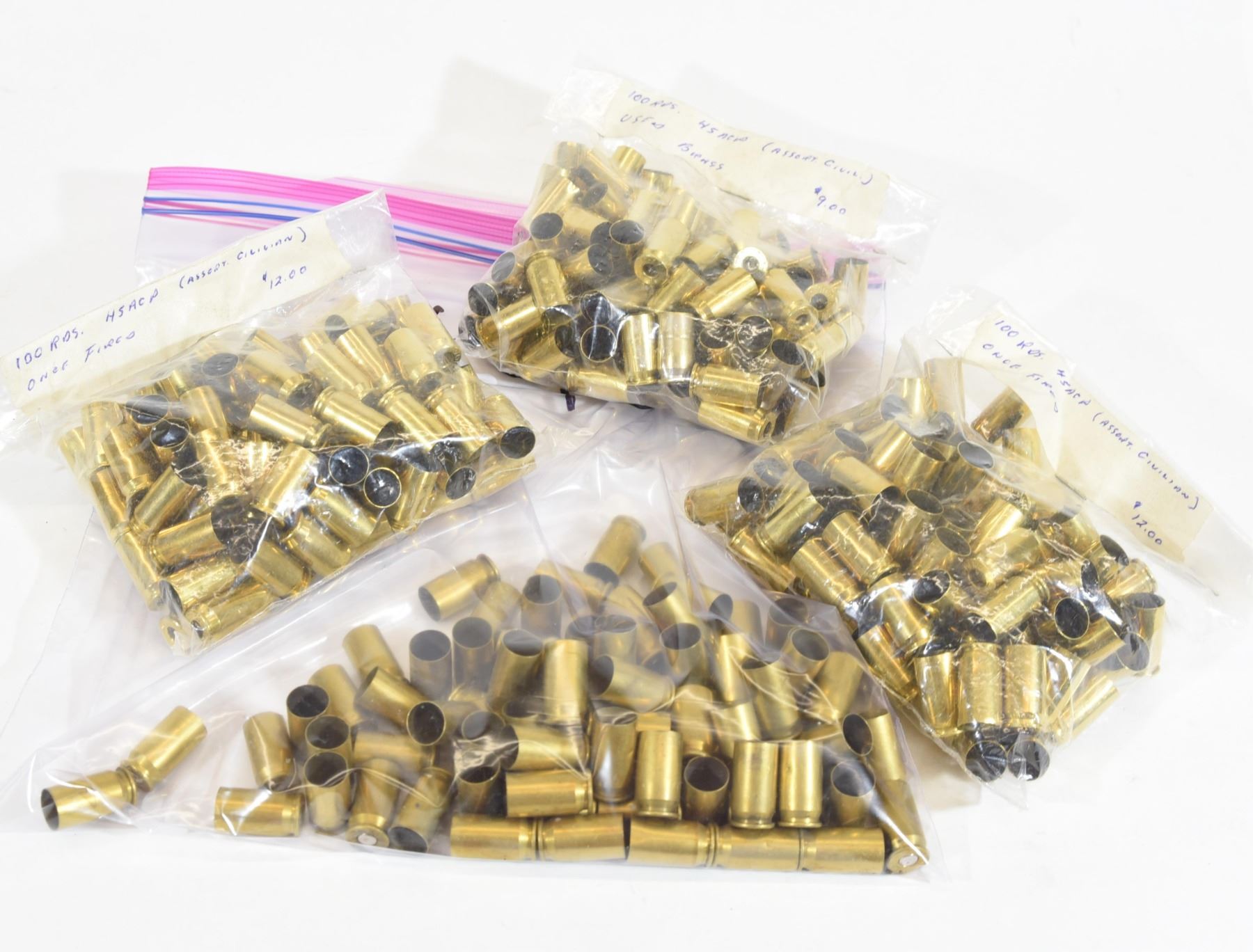 1) 180 pieces used brass. 80 have used primers. 100 are unprimed. 2) 200 pieces once-fired unprimed brass.