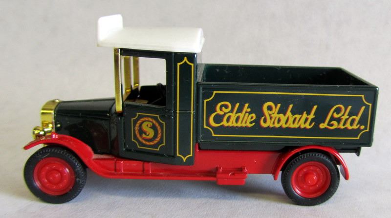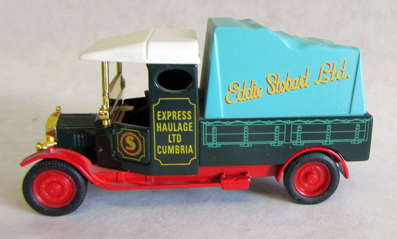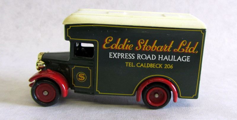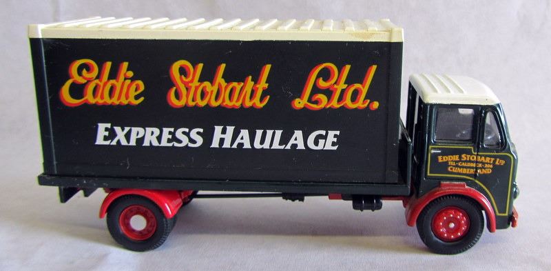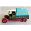 TRUCK AND TRAILER, VAN, PICKUP TRUCK, AND TRUCK WITH TARPED LOAD. ALL MADE BY CORGI. NO MODEL INFO.