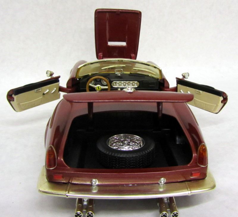 RED FERRARI 166MM, MADE BY HOTWHEELS MATTEL. RED FERRARI 365 GTB/4, 1:18, MADE BY HOTWHEELS MATTEL. BURGUNDY FERRARI 250 GT CALIFORNIA SPIDER, 1:18, MADE BY HOT WHEELS MATTEL. RED FERRARI 250 GT BERLINETTA LUSSO, MADE BY HOTWHEELS MATTEL.