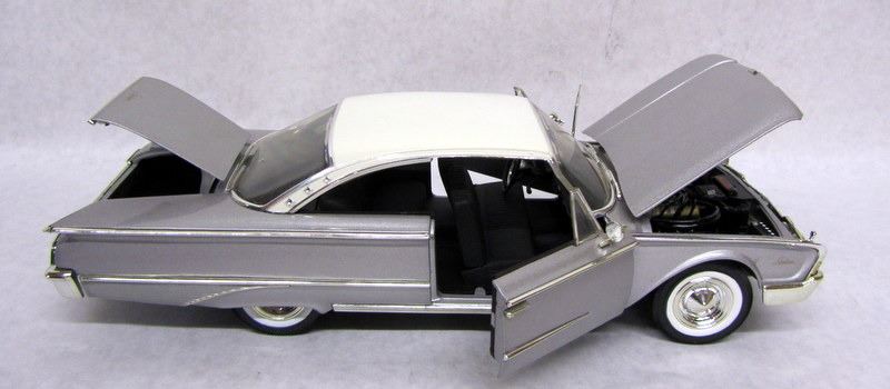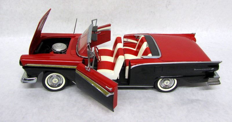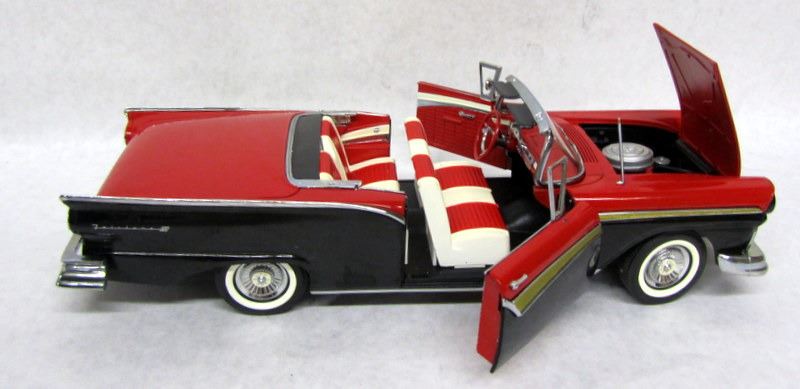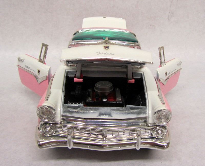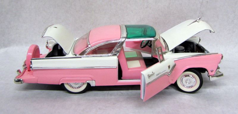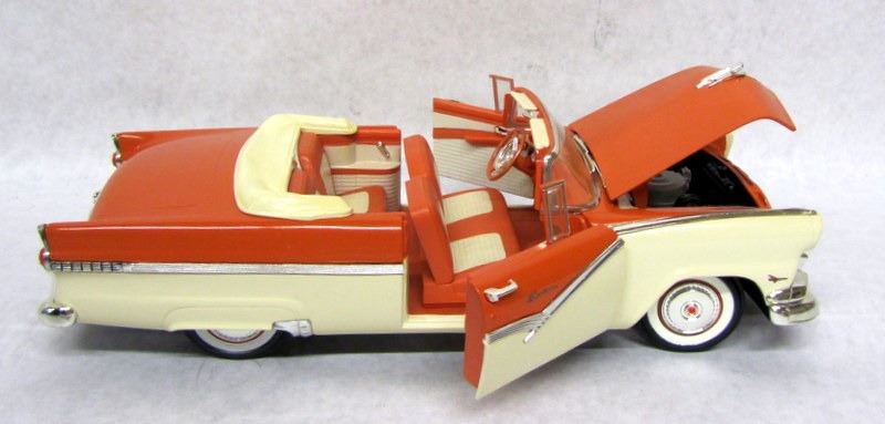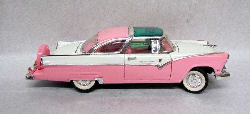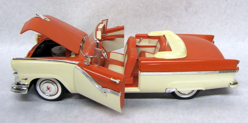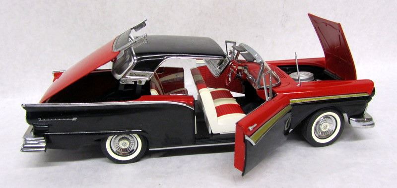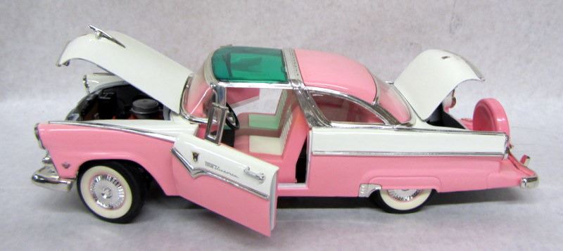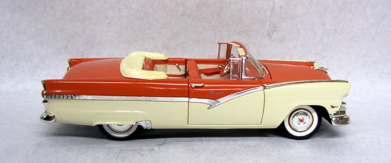SILVER 1960 FORD STARLINER. 1:18, MADE BY ERTL. PINK 1955 FORD CROWN VICTORIA, 1:18, MADE BY ROAD LEGENDS. ORANGE 1956 FORD SUNLINER, 1:18, MADE BY ERTL. 1957 FORD FAIRLANE SKYLINER, 1:18, MADE BY SUN STAR.