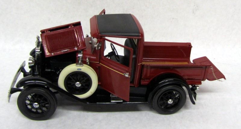 RED 1931 FORD MODEL A TOW TRUCK, 1:18, MADE BY SIGNATURE. BURGUNDY 1931 FORD MODEL A PICKUP TRUCK, 1:18, MADE BY MOTOR CITY CLASSICS. BLUE J&J TOWING 1931 FORD MODEL 1, 1:18, MADE BY MOTOR CITY CLASSICS. BLACK 1925 FORD MODEL T TRUCK, 1:24, MADE BY SUN STAR.