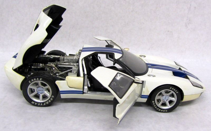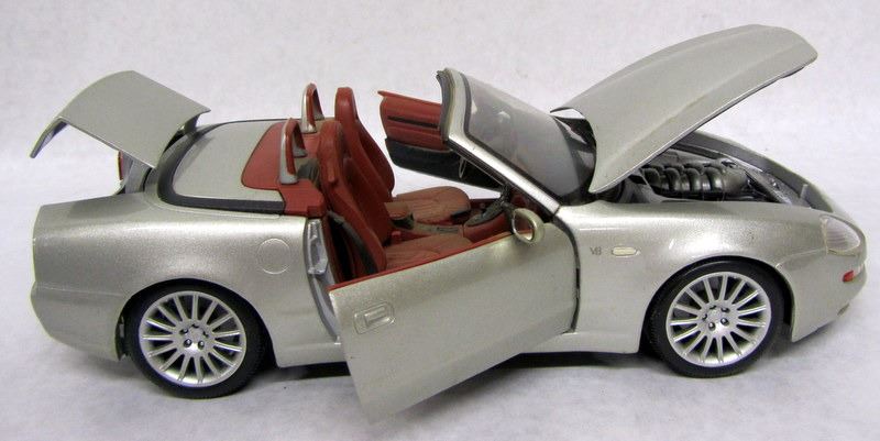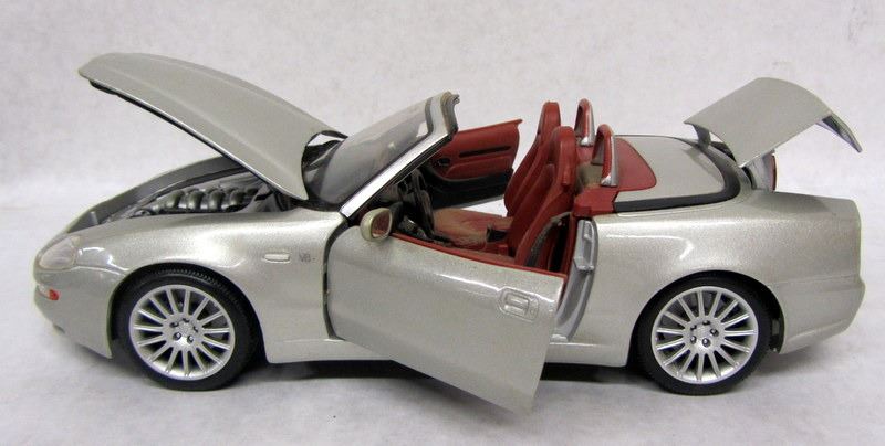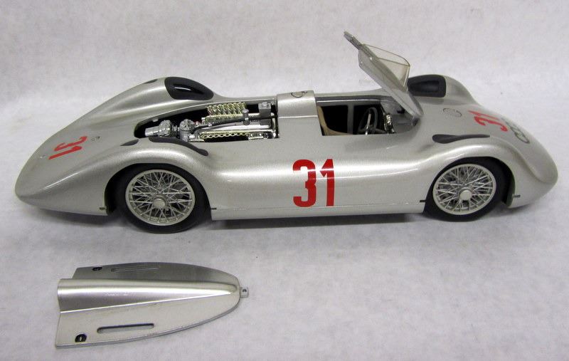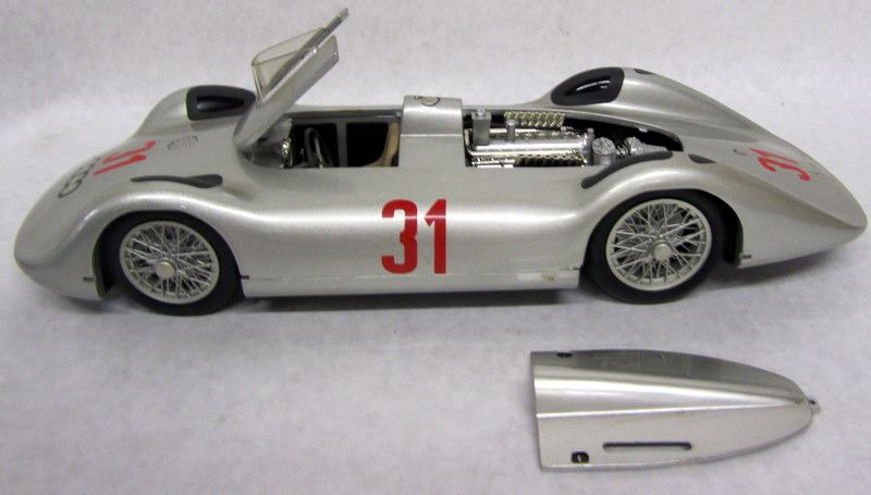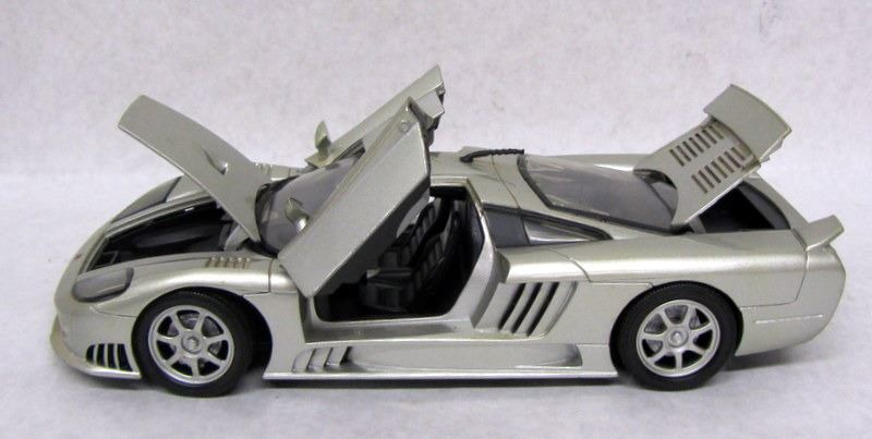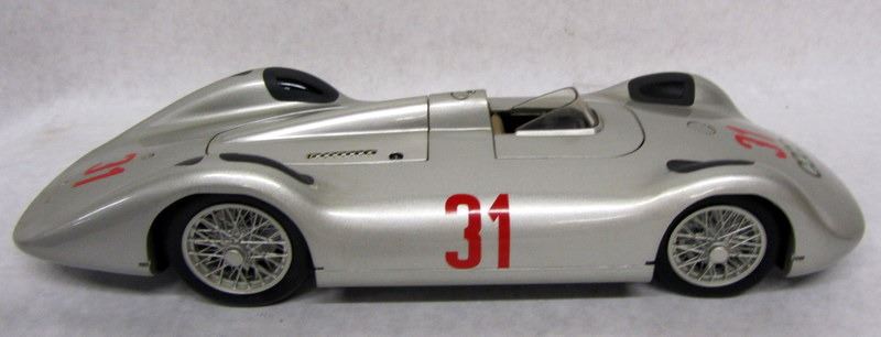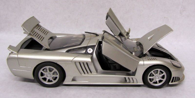 SILVER SALEEN S7, 1:18, MADE BY MOTOR MAX. WHITE FORD GT, 1:18, MADE BY THE BEANSTALK GROUP. SILVER AUTO UNION TYPE C WORLD RECORD CAR, 1:18, MADE BY REVELL. SILVER MASERATI SPYDER, 1:18, MADE BY MAISTO.