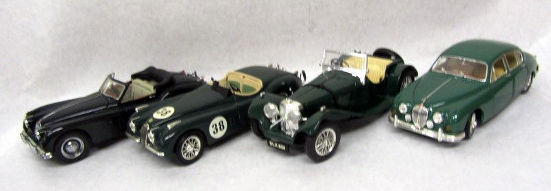 GREEN JAGUAR XK 140, 1:18, MADE BY SUN STAR. GREEN 1948 JAGUAR XK-120, 1:18, MADE BY ERTL. GREEN 1937 JAGUAR SS 100, 1:18, MADE BY DURAGO. GREEN 1959 JAGUAR MK.II, 1:18, MADE BY MAISTO.
