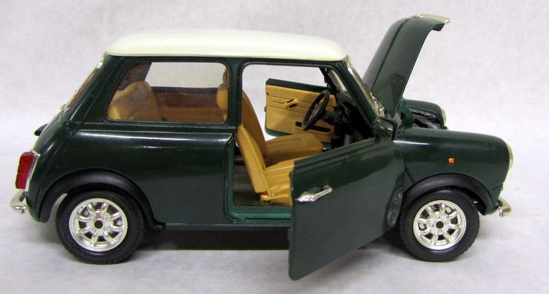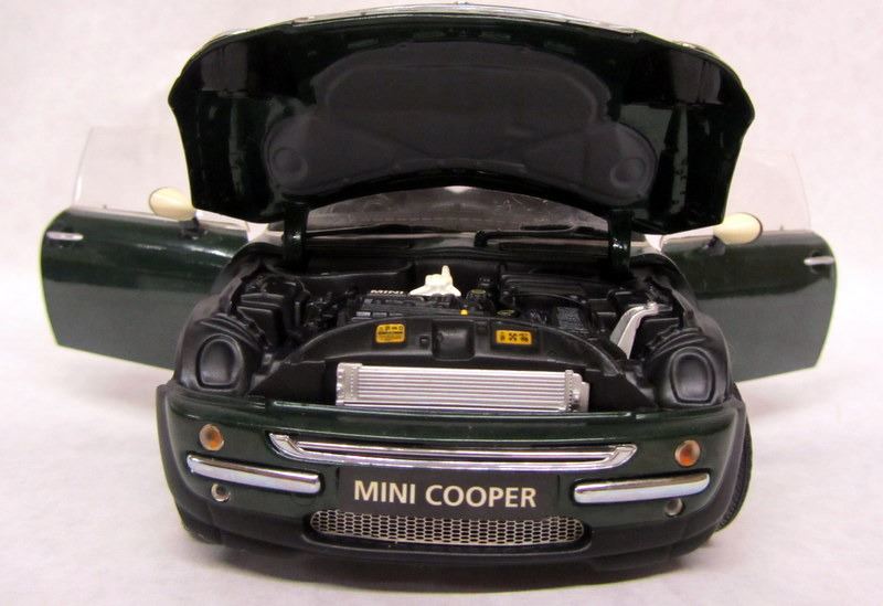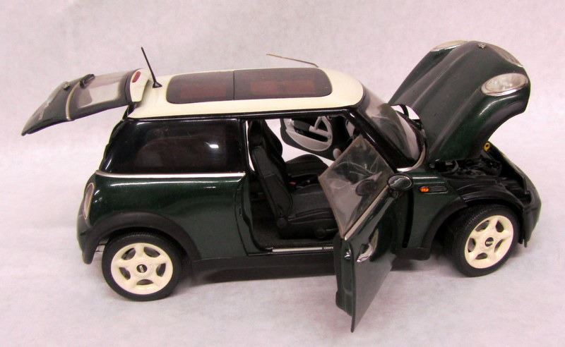 GREEN MINI COOPER, 1:18, MADE BY KYOSHO. GREEN MINI COOPER, 1:16, MADE BY DURAGO. BLUE MORRIS MINI COOPER, 1:18, MADE BY KYOSHO. MINI COUNTRYMAN, 1:18, MADE BY KYOSHO.