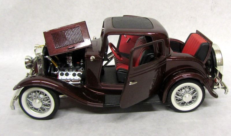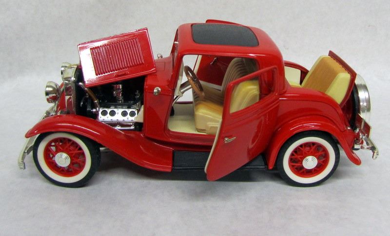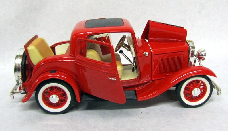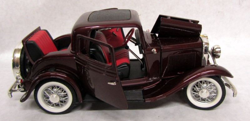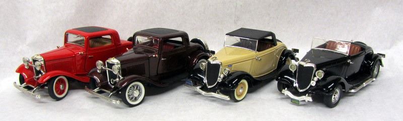 RED 1932 3-WINDOW COUPE, 1:18, MADE BY ROAD SIGNATURE. BURGUNDY 1932 3-WINDOW COUPE, 1:18, MADE BY ROAD SIGNATURE. BLACK 1934 FORD ROADSTER, 1:18, MADE BY SOLIDO. BEIGE 1934 FORD ROADSTER, 1:18, MADE BY SOLIDO.