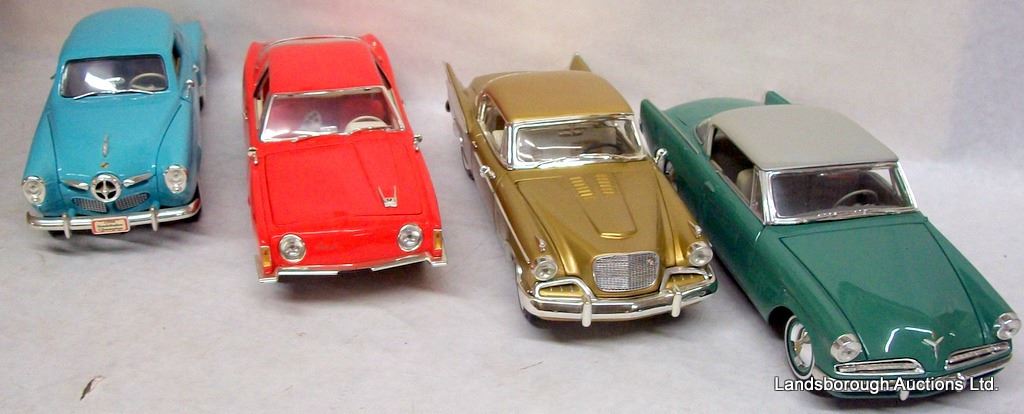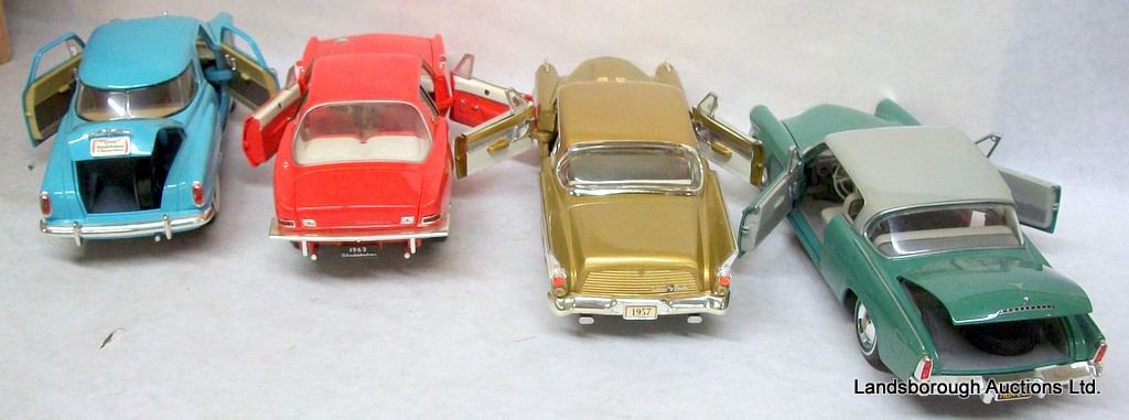 1953 STARLINER 1:18 SCALE BY MAISTO, 1957 GOLD HAWK 1:18 SCALE BY ANSON, 1963 AVANTI 1:18 SCALE BY SIGNATURE, 1950 CHAMPION 1:18 SCALE BY SIGNATURE.