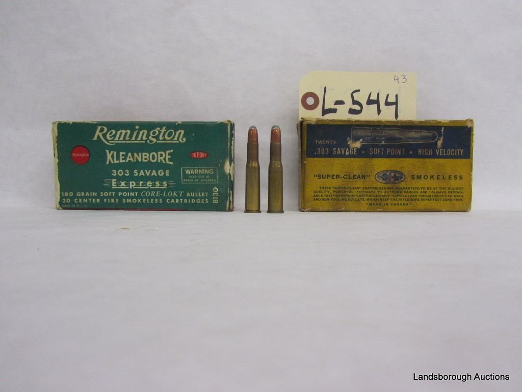 1 BOX 20 ROUNDS OF REMINGTON KLEANBORE 303 SAVAGE AMMO AND 1 BOX OF DOMINION SUPER-CLEAN 303 SAVAGE AMMO