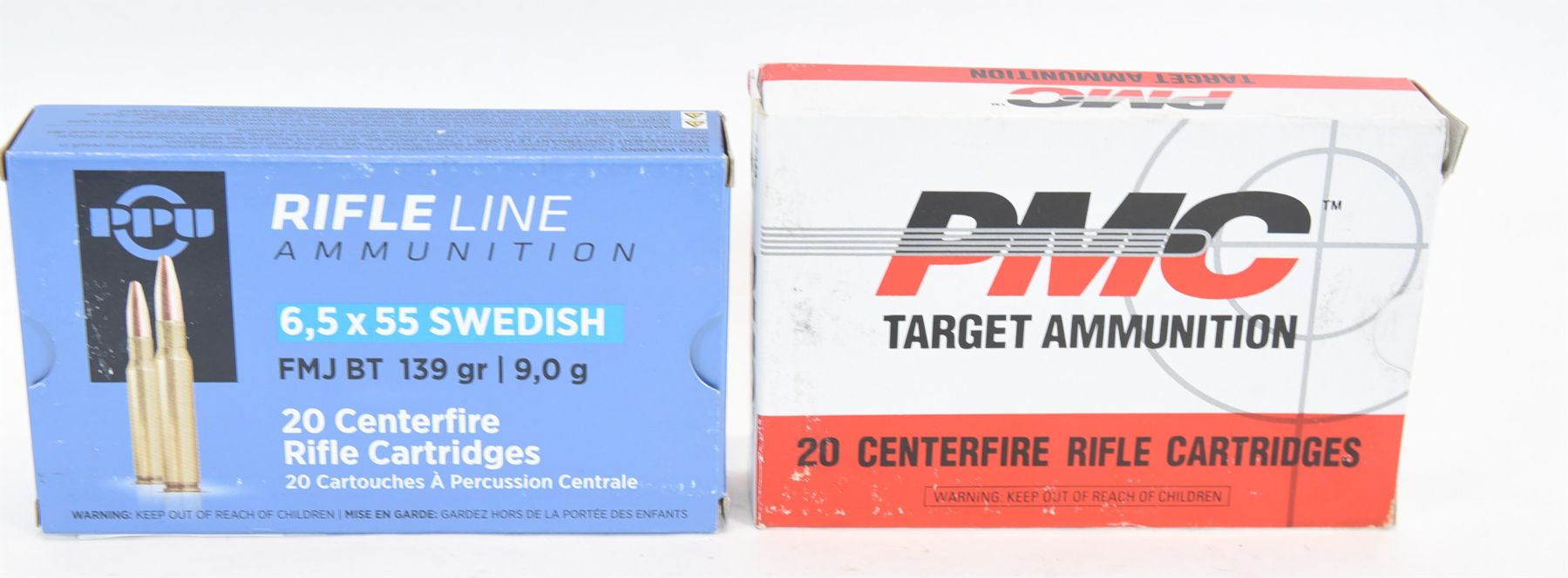 20 rounds PMC Target 6.5x55 Swedish 144gr FMJ ammunition.