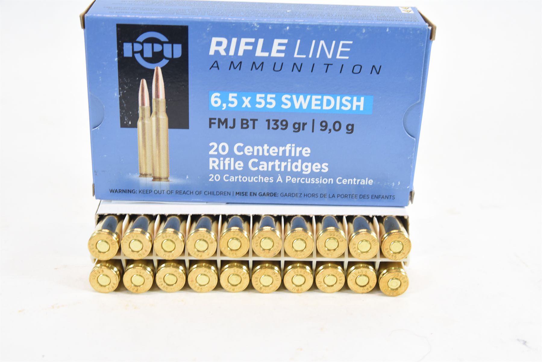 20 rounds PPU 6.5x55 Swedish 139gr FMJ ammunition.