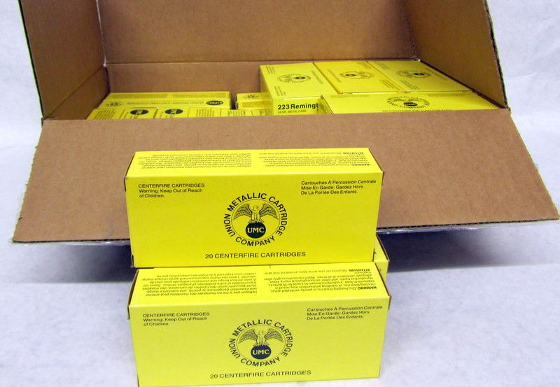 22 BOXES OF UMC 223 REM AMMUNITION. 55 GRAIN, FMJ