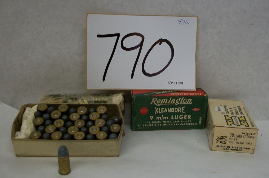 40 RDS 45 AUTO RIM, 50 RDS 9MM LUGER AND 50RDS 30 MAUSER.