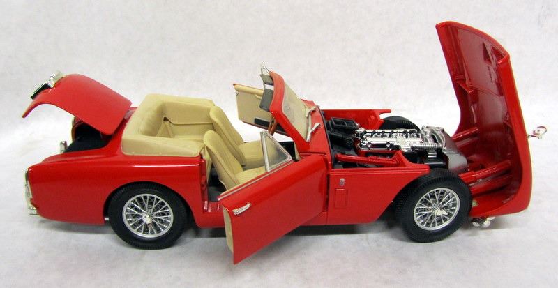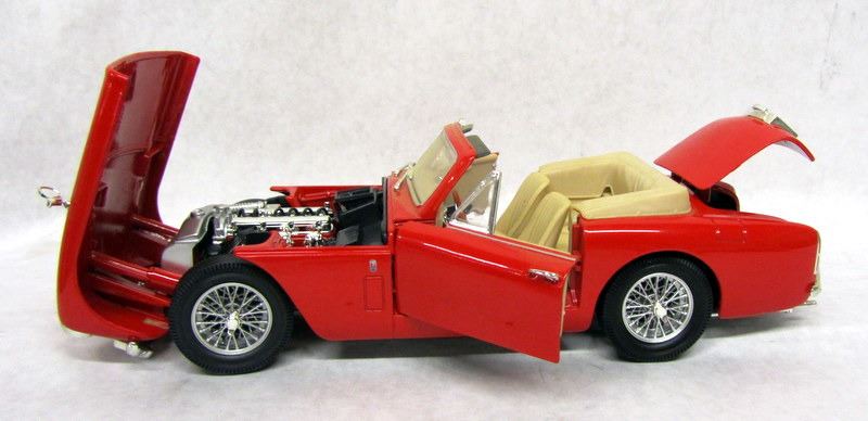 RED 1958 DB2-4 MARK III, 1:18, MADE BY ROAD SIGNATURE. GREEN 1963 DB5, 1:18, MADE BY CHRONO. RED 1961 DB4GT ZAGATO, 1:18, MADE BY ROAD SIGNATURE. SILVER DB7 VANTAGE, 1:18, MADE BY MAISTO. GREEN DB7 GT, 1:18, MADE BY GUITOY.
