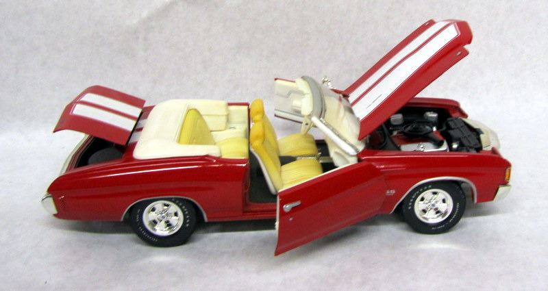 WHITE 1970 EL CAMINO, 1:18, MADE BY ERTL. GOLD 1969 CAMARO Z/28, MADE BY JOHNNY LIGHTNING. RED 1972 CHEVELLE, 1:18, MADE BY MAISTO. BLACK 1967 CAMARO Z/28, 1:18, MADE BY MAISTO. RED 1969 CAMARO, 1:18, MADE BY ERTL.