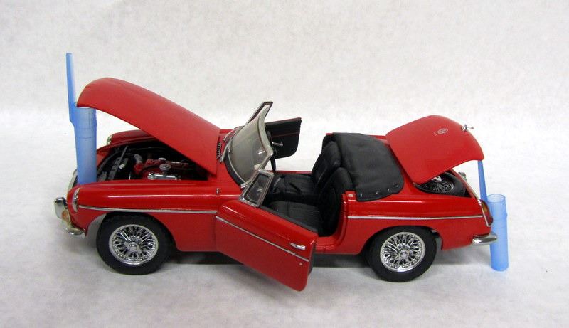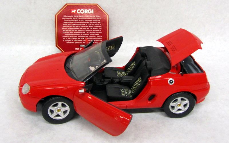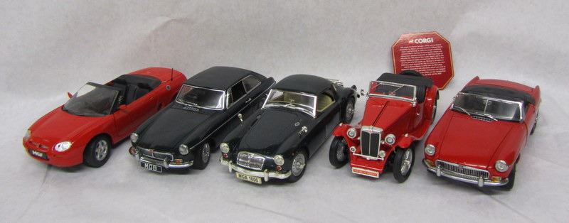 RED 1947 MC MT MIDGET, 1:18, MADE BY ROAD SIGNATURE. RED MG MGB MK.1, 1:18, MADE BY KYOSHO. RED MG MGF OPEN TOP, 1:18, MADE BY CORGI. GREEN MG MGA 1600, 1:18, MADE BY REVELL. GREEN MG MGB MK.2, 1:18, MADE BY AUTOART.