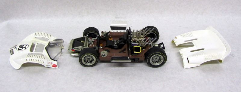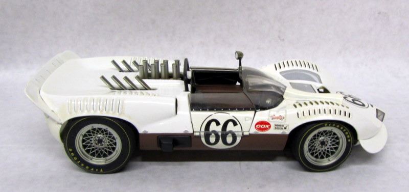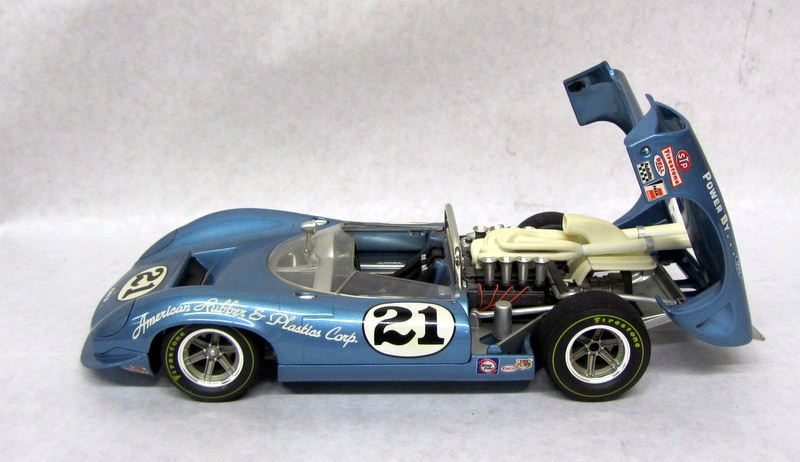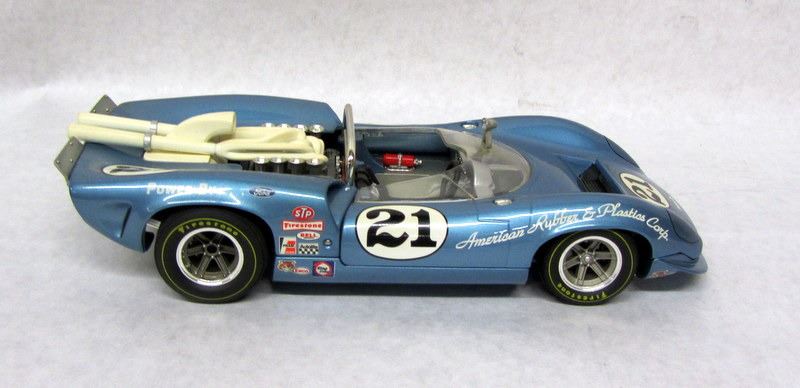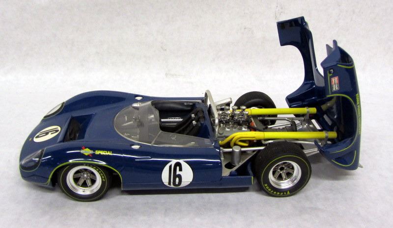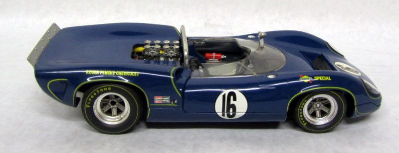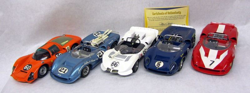 RED #7 LOLA RACECAR, 1:18, MADE BY GMP. BLUE #16 LOLA RACECAR, 1:18, MADE BY GMP, WITH PENSKE RACING CERTIFICATE. WHITE #66 CHAPPARRAL RACECAR, 1:18, MADE BY AUTOART. BLUE #21 FORD LOLA RACECAR, 1:18, MADE BY GMP. ORANGE #60 PORSCHE RACECAR, 1:18, MADE BY PAULS MODEL ART.