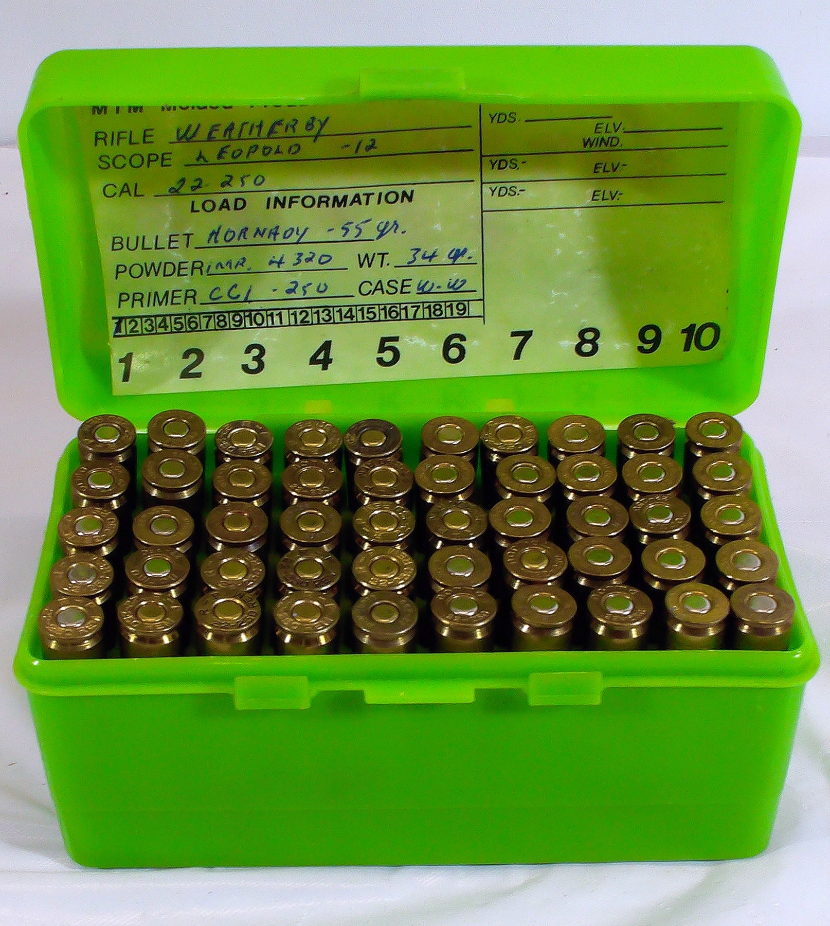 50 Rounds 22-250 55gr Reloaded Ammunition