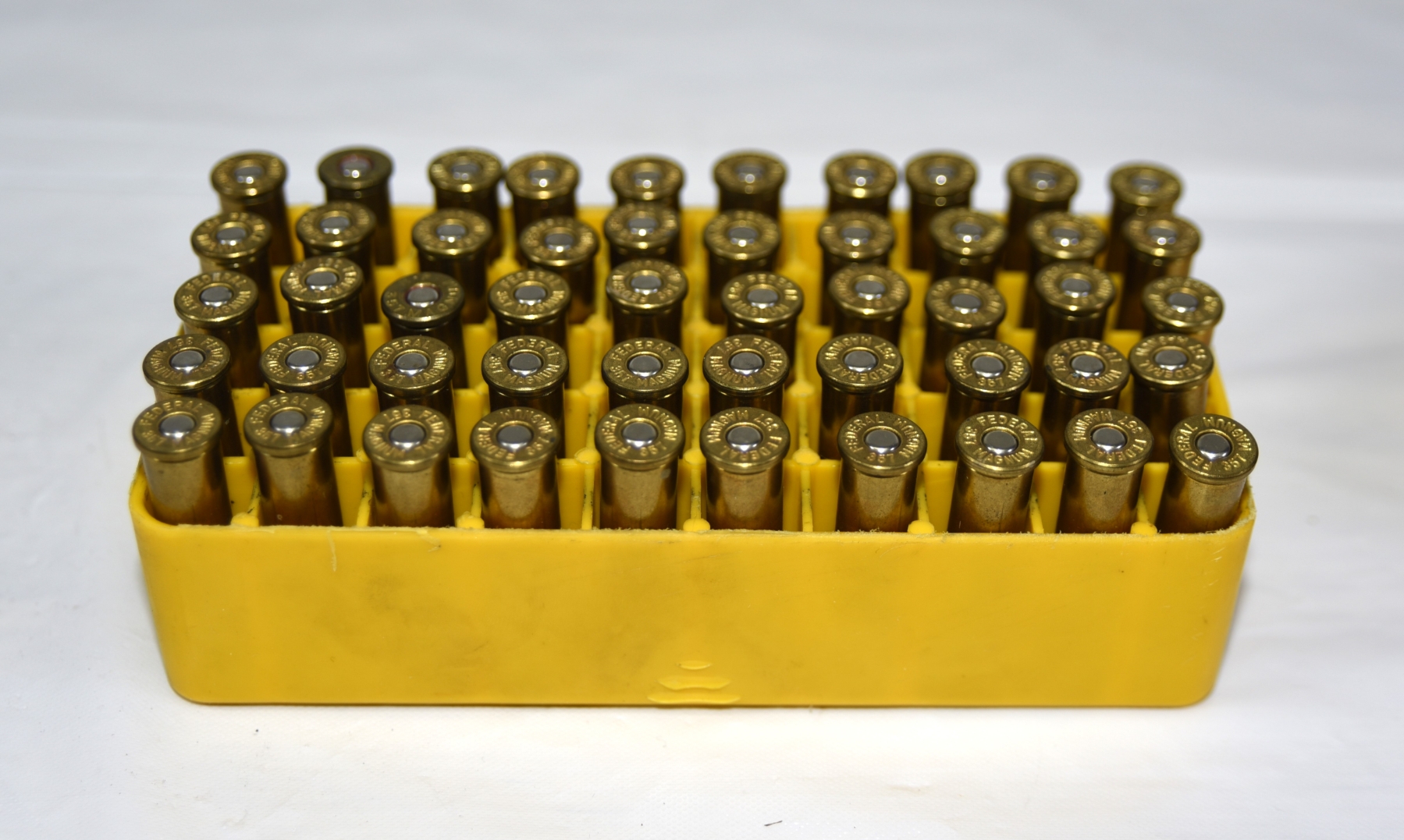 50 Rounds Assorted Brands Reloaded .357 Magnum LSWC Ammunition In Plastic Container